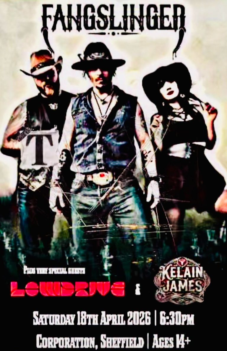 FangSlinger’s sound blends hard rock with gothic Americana and western-inspired storytelling, built around groove-driven riffs, layered vocals and a strong narrative thread. Their music moves between blues-tinged restraint and heavier, more metallic passages, creating a cinematic feel that remains grounded in weight and intent. The album launch signals a new chapter in their output while staying true to the established identity they’ve been shaping.