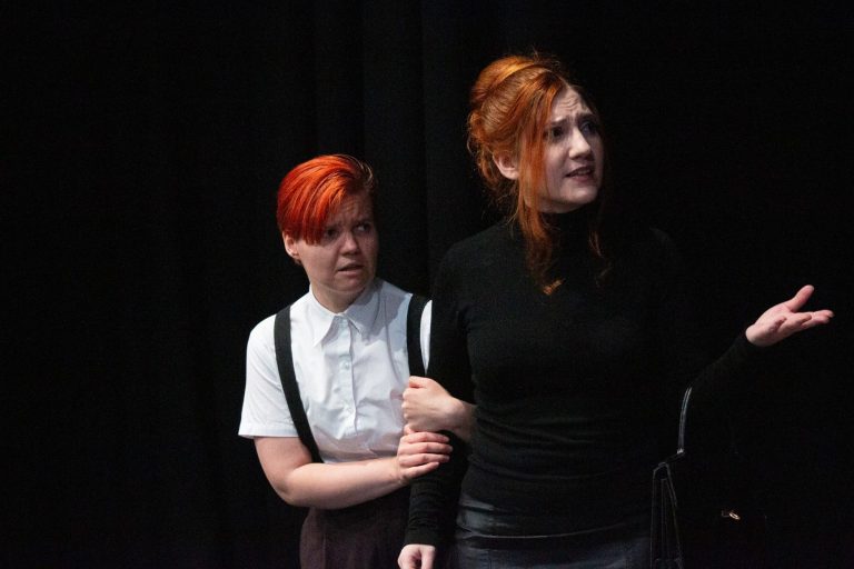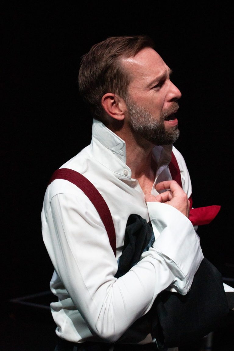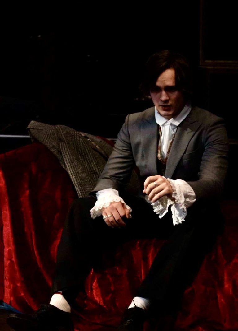 Paul Heelis gave a thoughtful performance as Basil Hallward, conveying the artist’s tortured admiration and longing without ever tipping into melodrama. A character that audiences root for. Meanwhile, Iona Wilkins’ Sibyl Vane was both endearing and deeply tragic; her scenes carried real emotional weight, particularly in the portrayal of her relationship with her mother (Mandy Simms), which was rendered as both comical and heartbreaking by both performers. The addition of the character of Gladys proved a touch of layered genius (without spoiling anything!): played by the magnetic Laura Payne, whose fast wit and delivery felt wonderfully reminiscent of Wilde himself. Payne is a truly gifted performer.